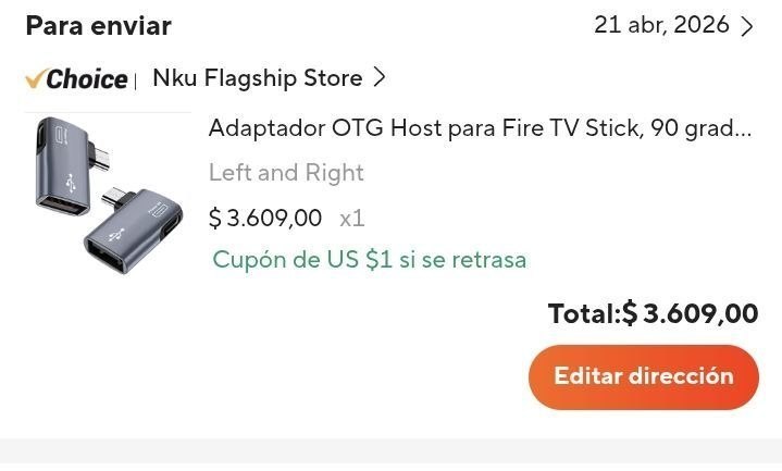 ➡️ 💰 6 dólares cuenta normal $3.609 cuenta nueva Aliexpress Host OTG Adapter para Fire TV Stick, ángulo izquierdo/derecho de 90°, micro USB a USB OTG. #AccesoriosElectrónicos #USBOTG #FireTV #ad 🔗 Comprar en Aliexpress https://s.click.aliexpress.com/e/_c3xhPPDz Aportes con @Aclubgrabot
