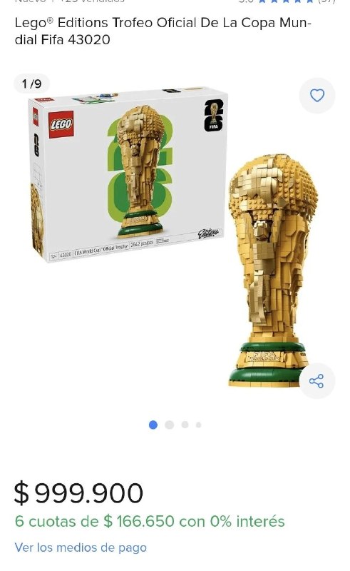 ➡️ 💰 $999.900 Vendido por lego Lego® Editions Trofeo Oficial De La Copa Mundial Fifa 43020 Comprar en mercado libre https://www.mercadolibre.com.co/lego-editions-trofeo-oficial-de-la-copa-mundial-fifa-43020/p/MCO62775758 Aportes con @Aclubgrabot
